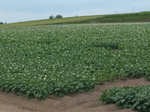晴天が続く中、じゃがいも畑では可愛らしいお花が顔を出し始めました。
