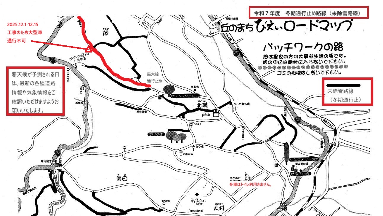 【パッチワークの路(セブンスターの木)の冬期路線につきまして】