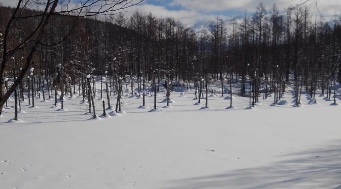 積雪のある12月~4月頃までの間は、白金青い池の水面が凍り、その上に雪が積もっています。 残念ながら青い水面を見ることはできませんが、雪に覆われた一面に広がる真っ白な青い池もまた今しか見られない風景です。 日没~夜9時までは、冬のライトアッ……