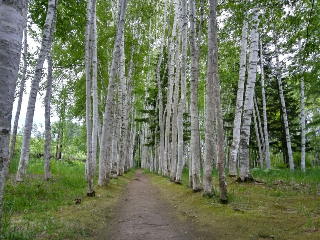 美瑛の観光スポットの一つ「白樺回廊」フォトギャラリー「拓真館」に隣接している散策路です。白く美しい白樺の木と新緑の緑に包まれた空間は歩くだけで癒しの心と自然のパワーがもらえますよ☆ぜひ美瑛観光に訪れた際はお立ち寄り下さい。 &……
