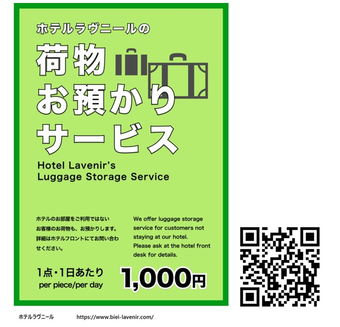 なお、大型のお手荷物はホテルラヴニール フロントで