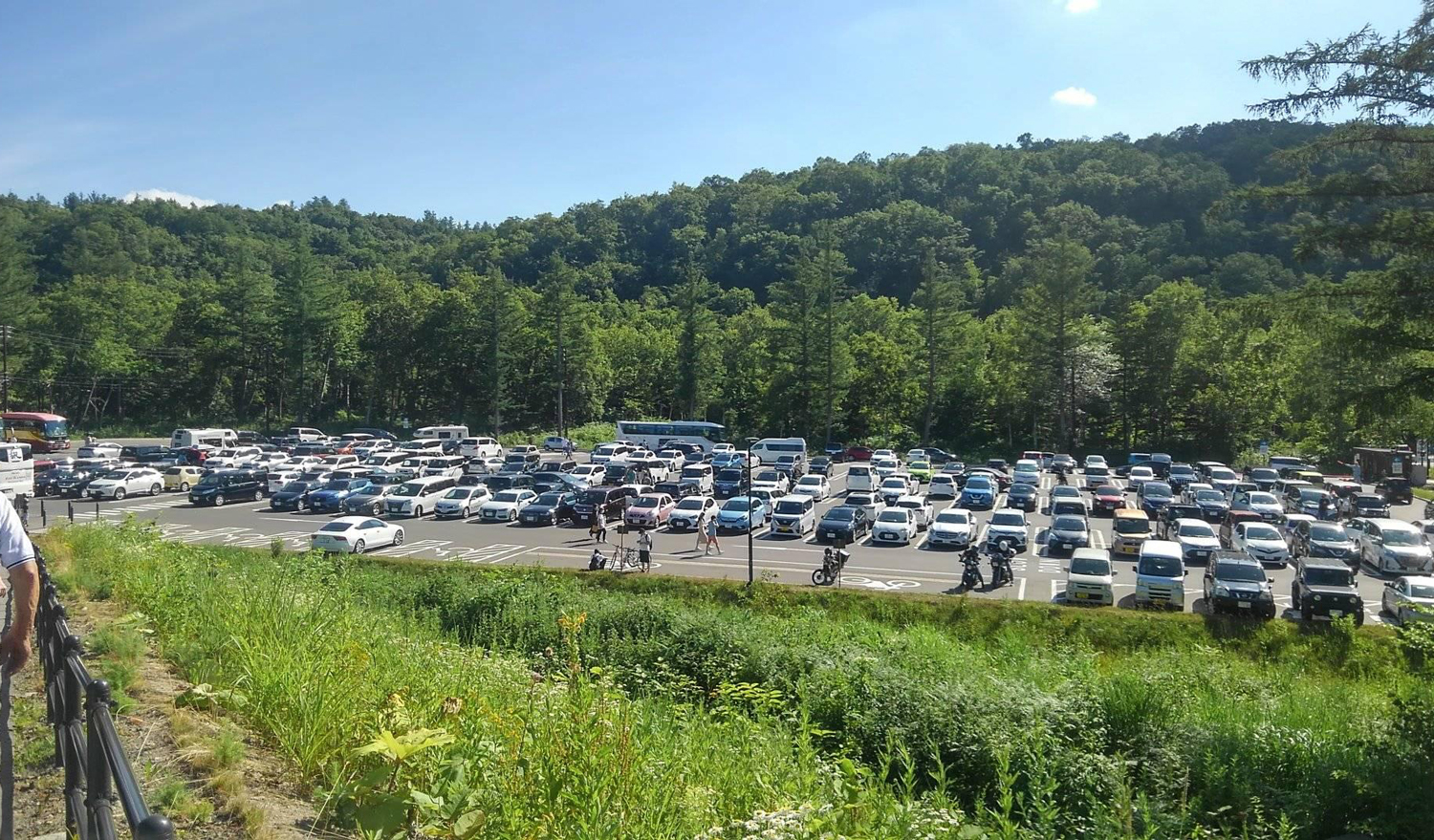 昨日、青い池駐車場に入るまでの道のりが午後から一時渋滞になりました。