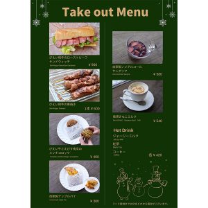 店内で楽しめるメニューの他に、気軽にテイクアウトで楽しめるメニューのお知らせが届きました。