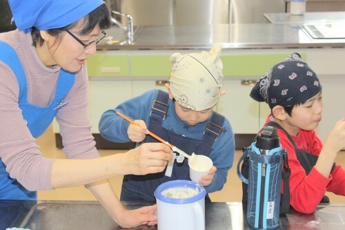 ここでの加工体験では、美瑛産牛乳を使ったアイスクリーム作りが体験できます。インストラクターの方が、素材の知識とおいしく作るコツを分かりやすく教えて下さいます。