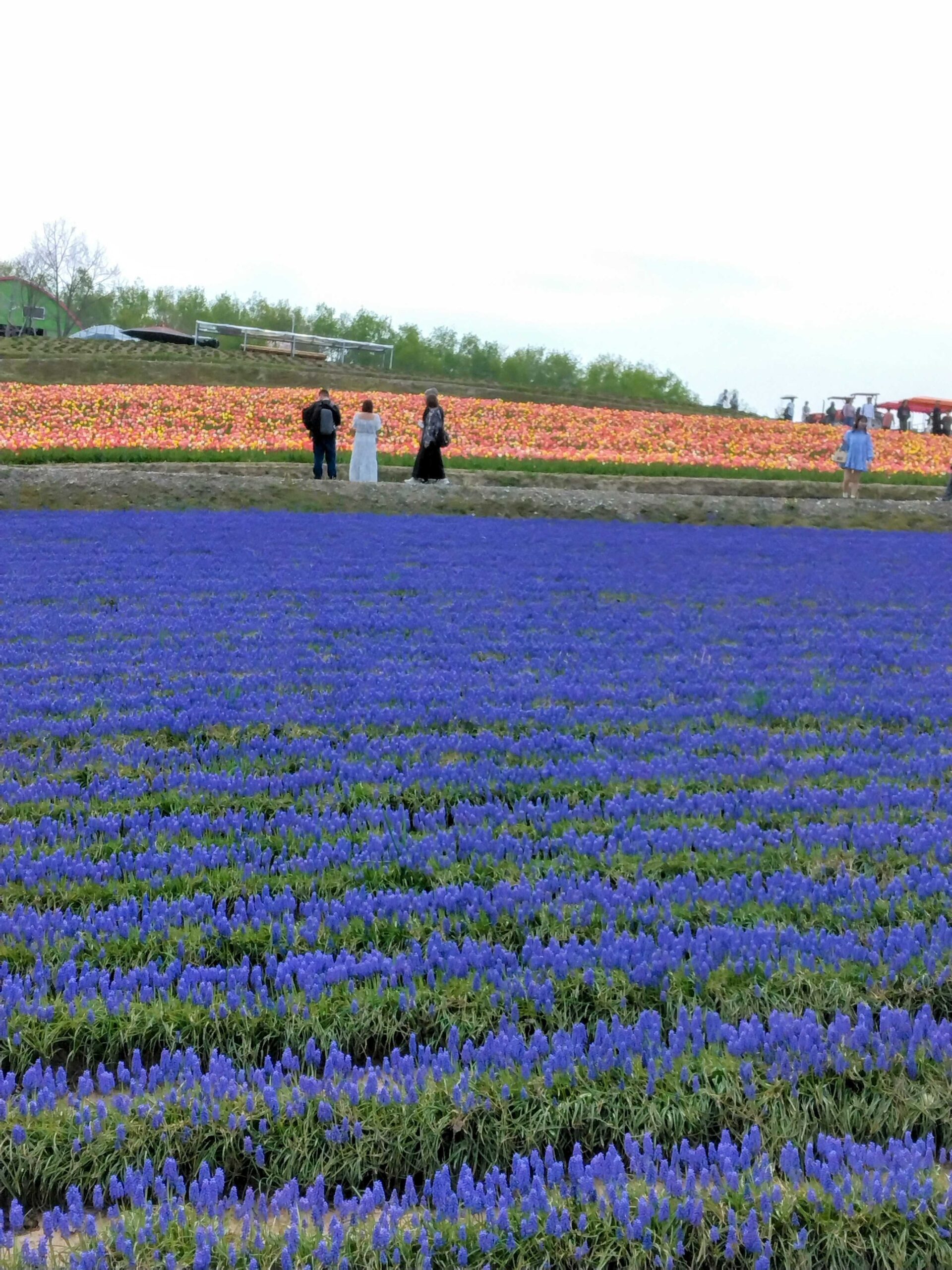 四季彩の丘ではムスカリと色とりどりのチューリップが見頃を迎えました。