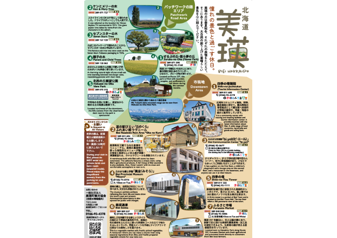 | Pamphlet summarizing typical sightseeing spots and facilities in Biei-cho |